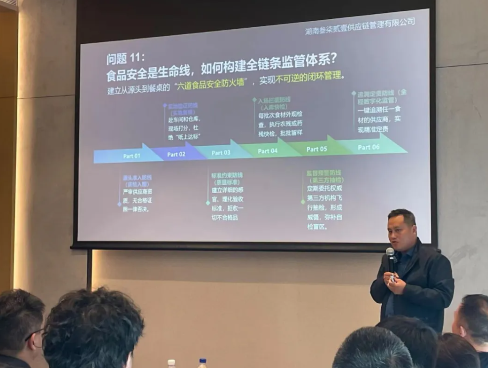 来自四川、贵州、湖南的三位行业实战派嘉宾——四川菜蓝子生态农业集团李总、贵州吉马供应链郭总、湖南叁柒贰壹供应链周总,围绕“国企民企协同、成本管控、食品安全、跨区域落地”等核心痛点,分享一手操盘经验,为行业奉上了一场满是“落地方法论”的干货盛宴。