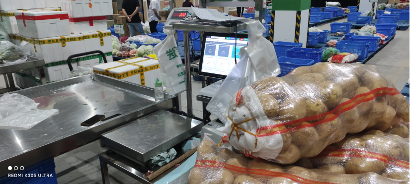 分拣员的重复单一的工作,主要负责称重打包重复的工作,分拣后由传送带将分拣小包分流至投框处,核对标签中的订单信息放进对应的客户框当中,工作流程减少搬运,减少生鲜损耗,工作轻松的同时提高效率。
