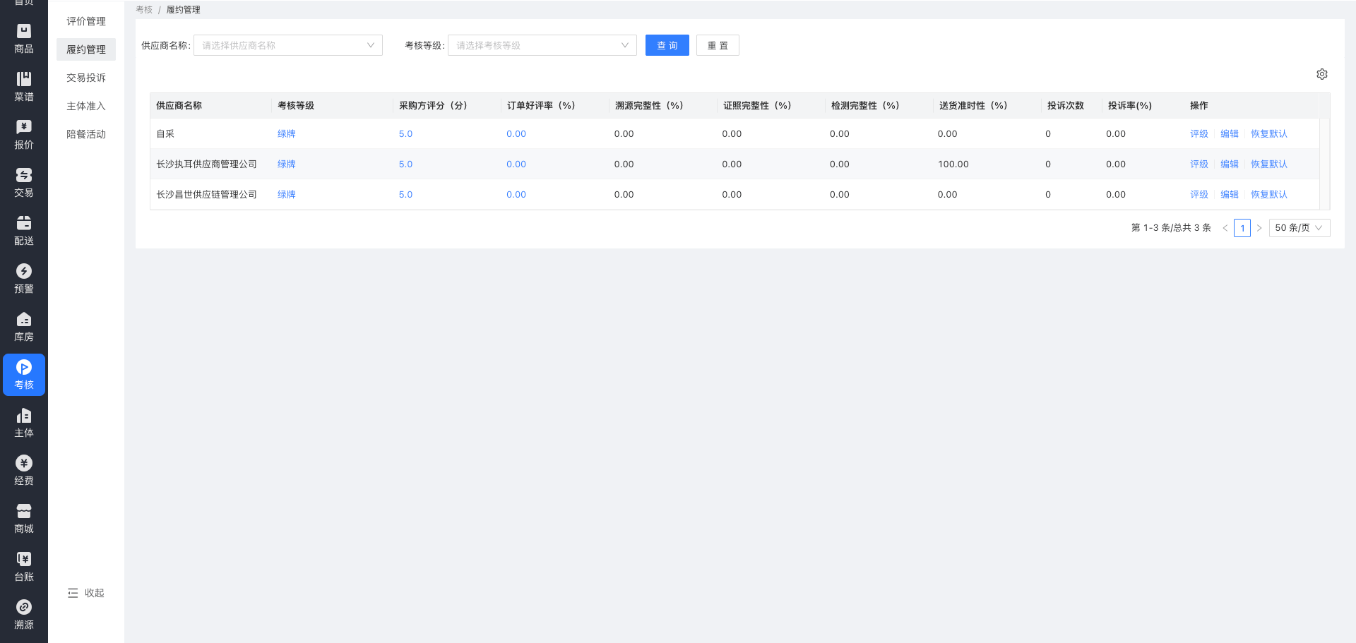 多维动态评级:在履约环节,基于价格稳定性、食材质量达标率、配送时效性、售后服务响应速度等多维度数据,自动生成供应商动态评级。